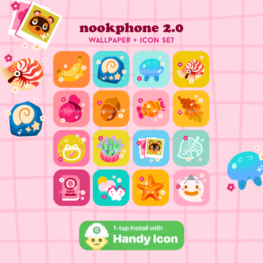 Nookphone 2.0 brings you more bright and joyful icons for your screens! Compatible with Mac, PC, Android, and iOS ✨